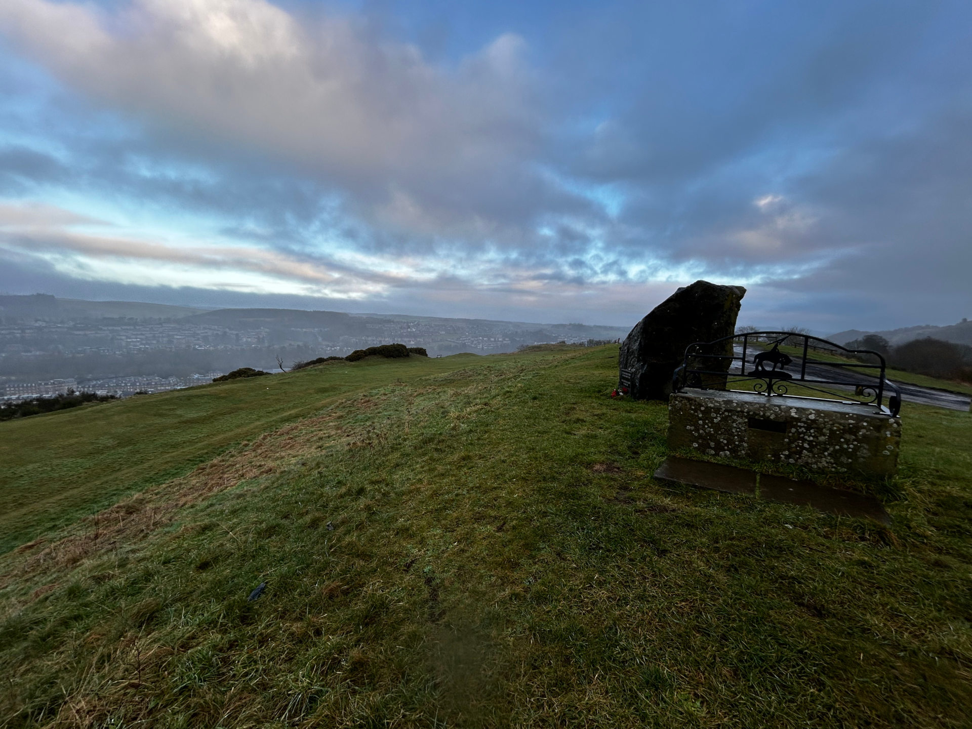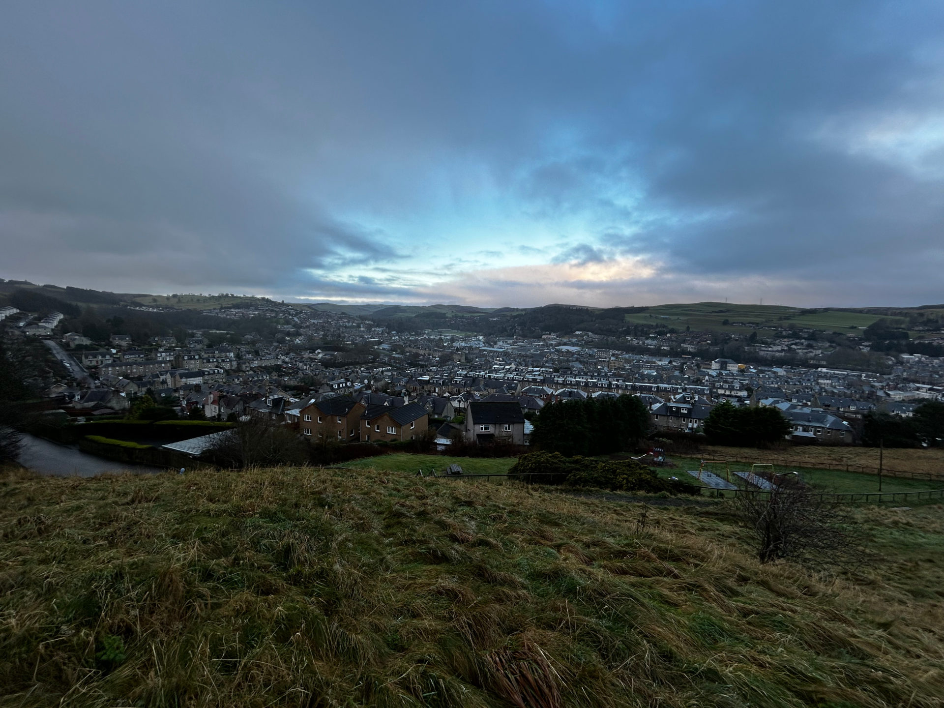 The front wheel diskpads on the 4x4 are gone, Charlie said he'll order some from ebay. He drove me to Hawick viewpoint, where I sat on a bench and took some overhead views of Hawick centre. Weather was overcast wet with a North-Western breeze blowing drizzle.