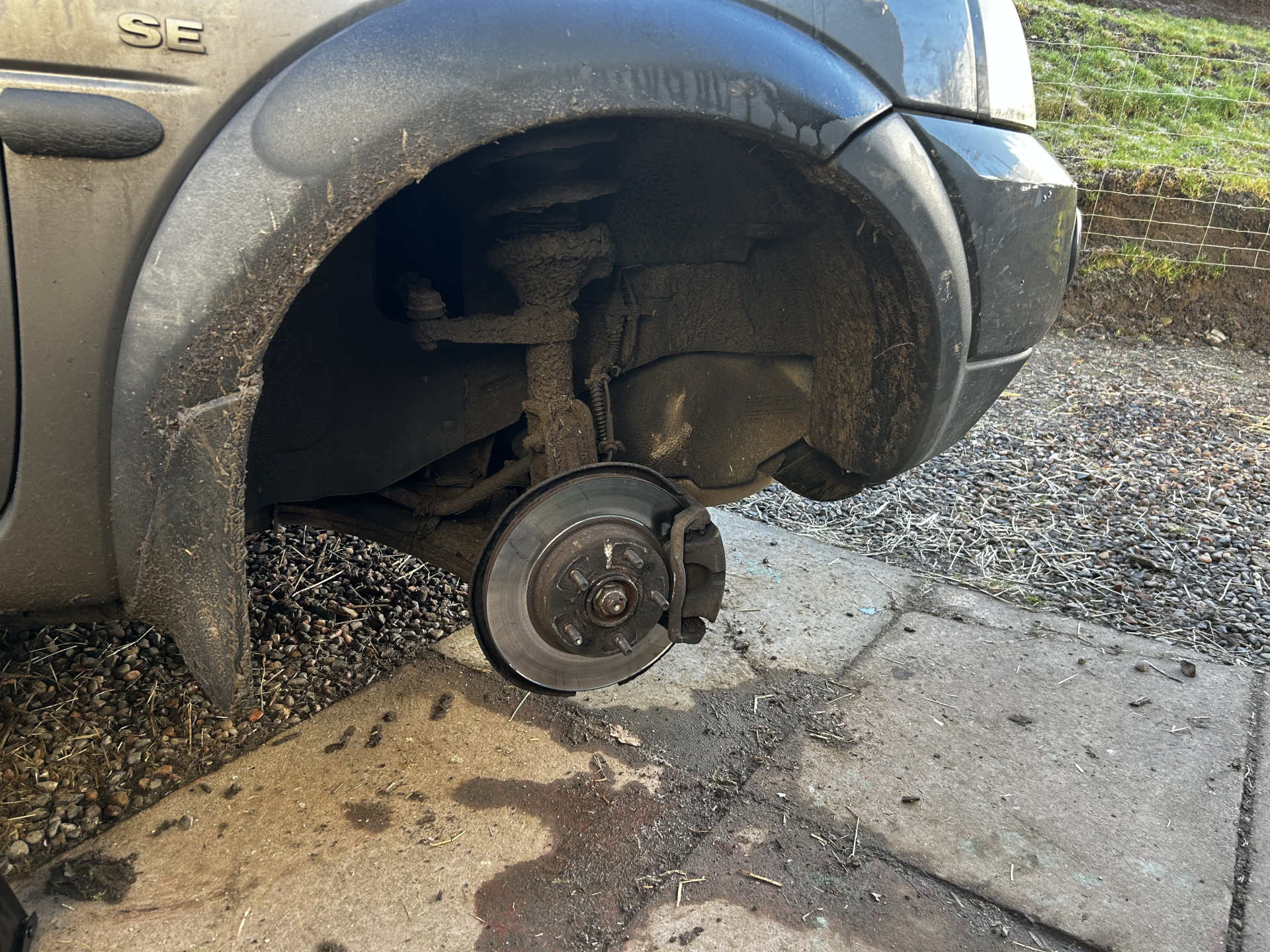 Charlie fixed the disk brake pads on the 4x4. The brakes had been bodged fitted.