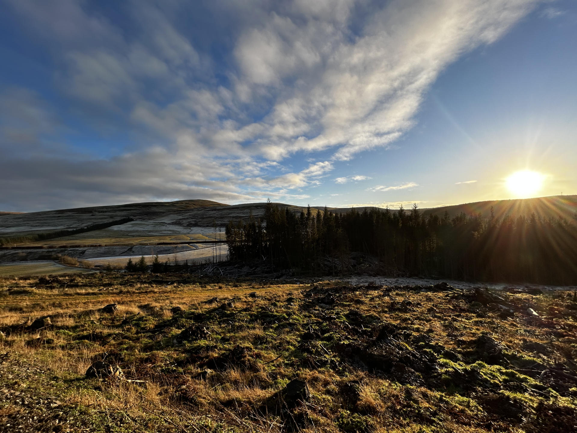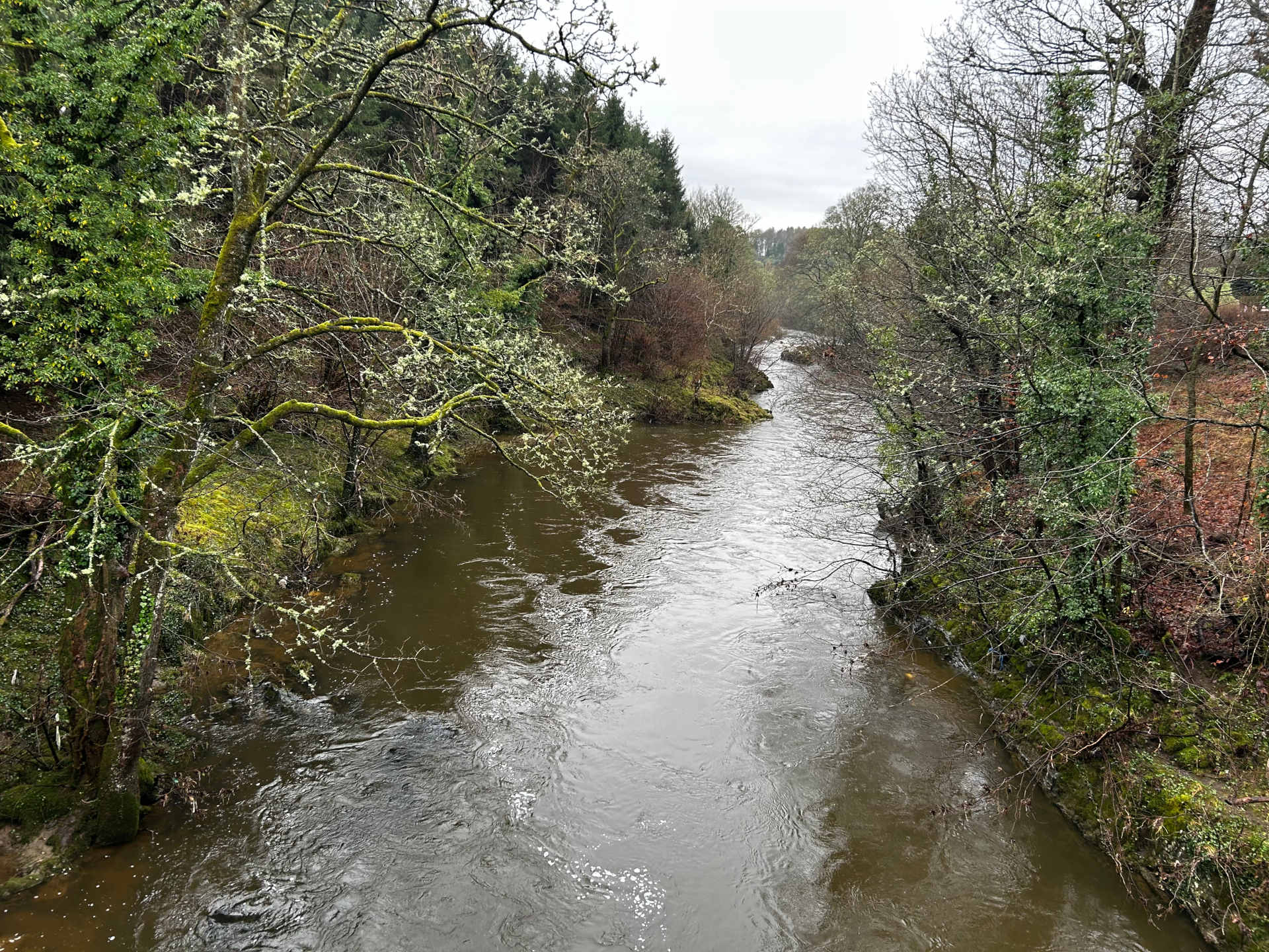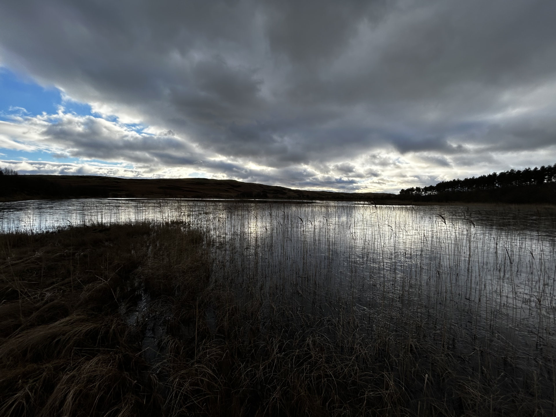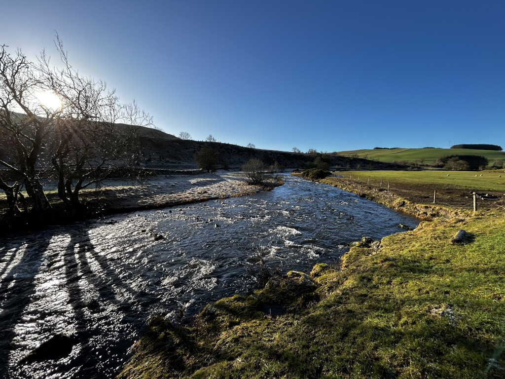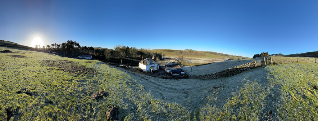 Returning to the farmhouse I took of picture of a view I have taken numerous occasions before; rippling light reflected from the curve of the Borthwick water is bonnie to the sight, underneath clearer skies.