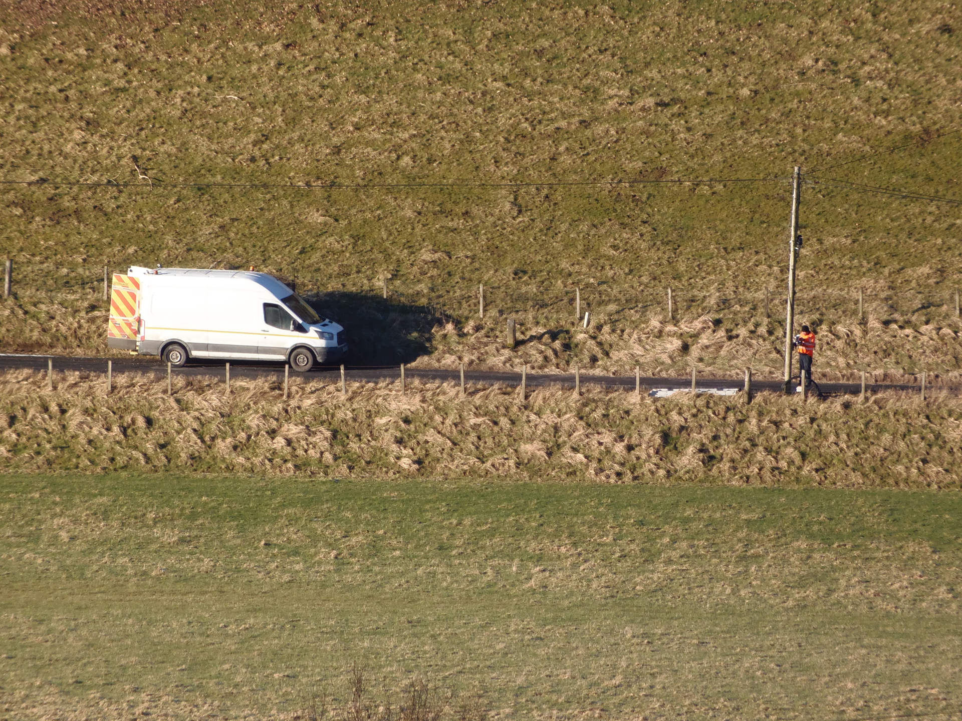 There are many work men about at work throughout the valley, fixing telephone cables.