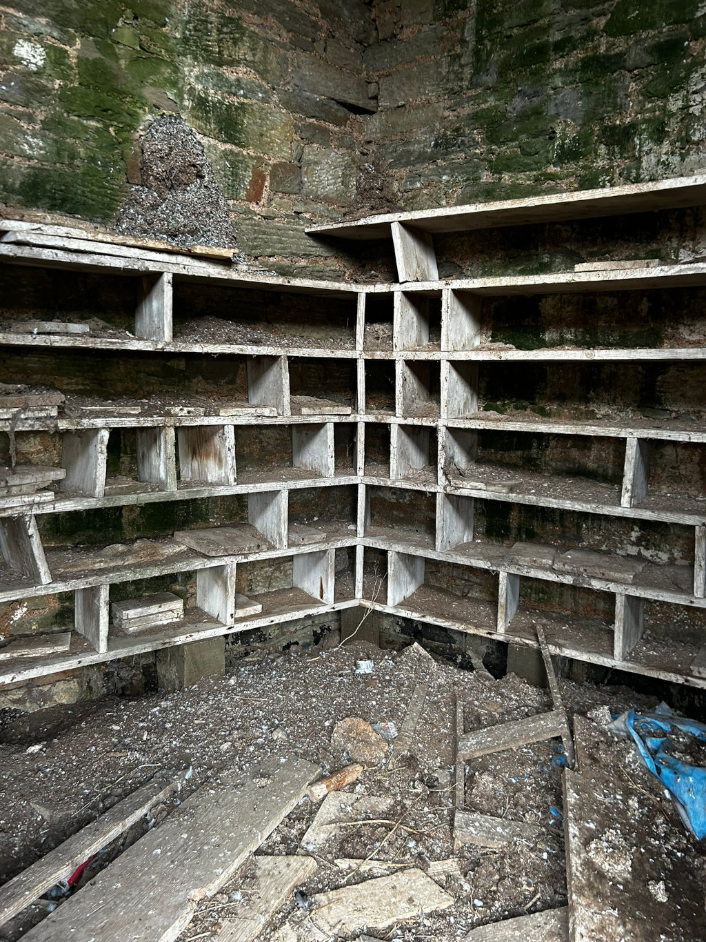 Temporary fixed a break in the farmhouse stone walling; Charlie said the wall has to be taken down to fix the collapse properly.