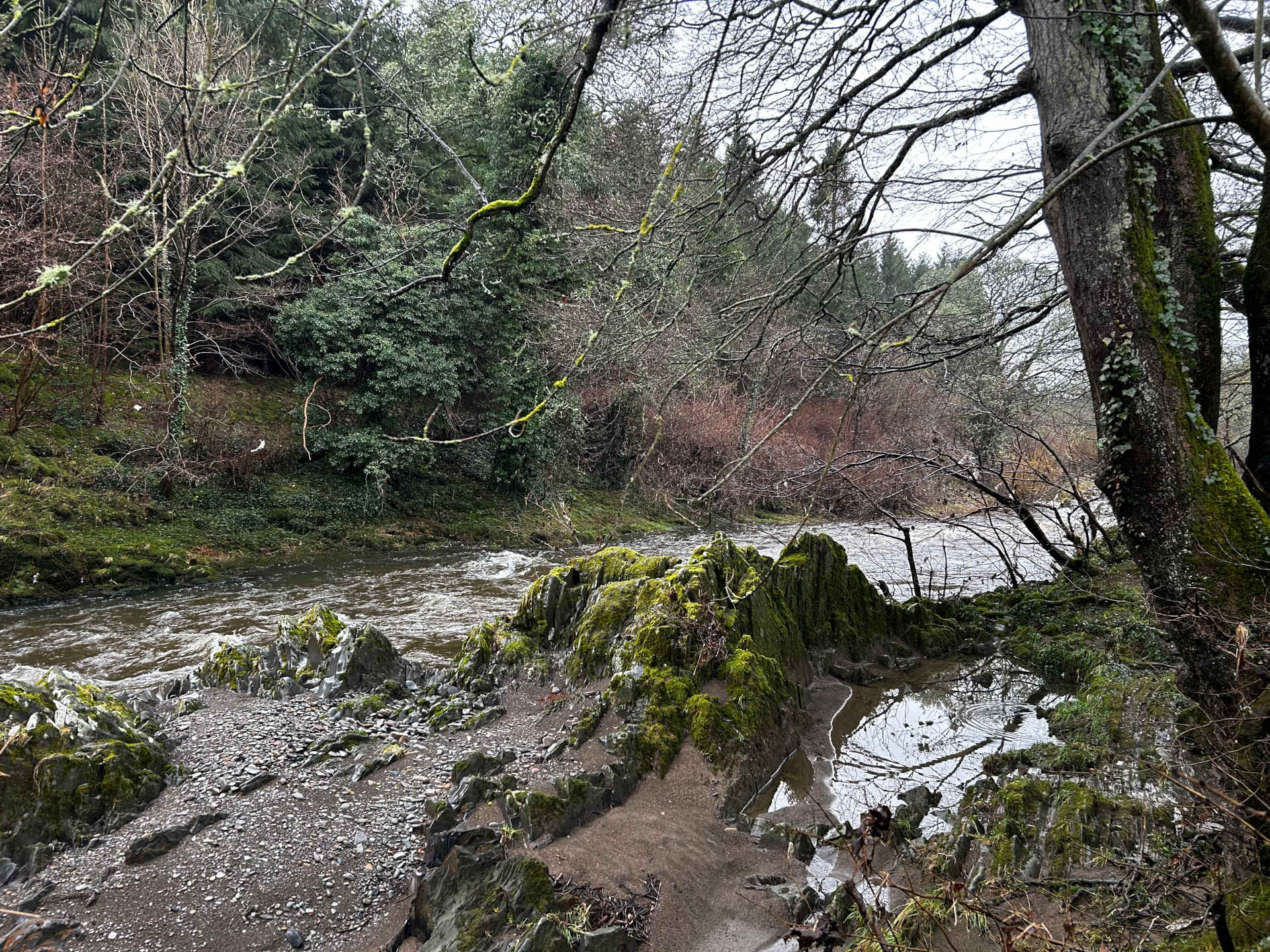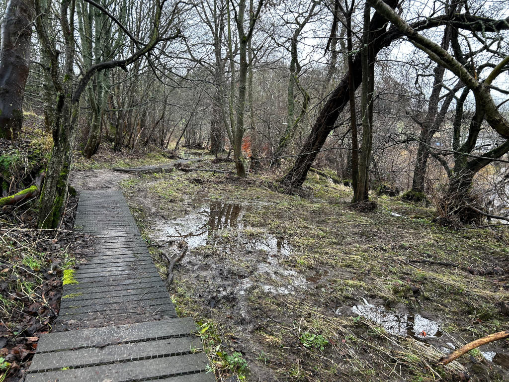 Tore my dress as I climbed over a gate, then we walked down through woodland to another loch.
