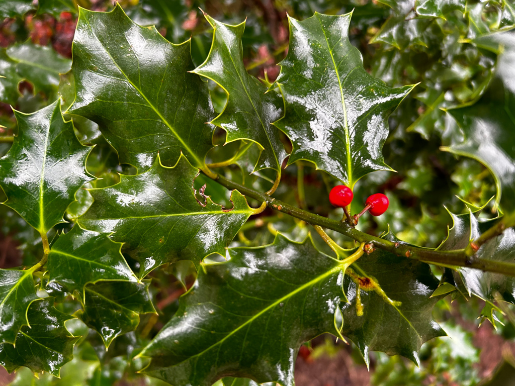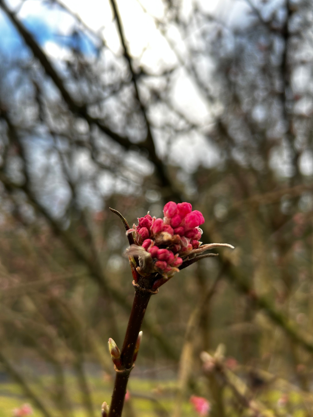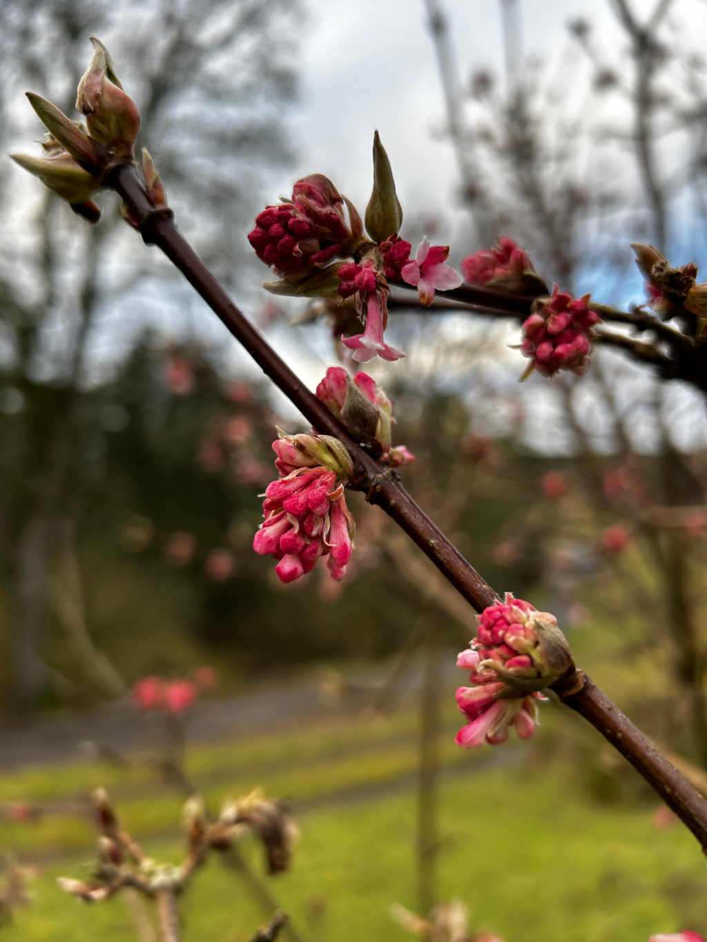 Shrub in the farmhouse garden has bloomed, warming to see bloom during these colder midwinter months.