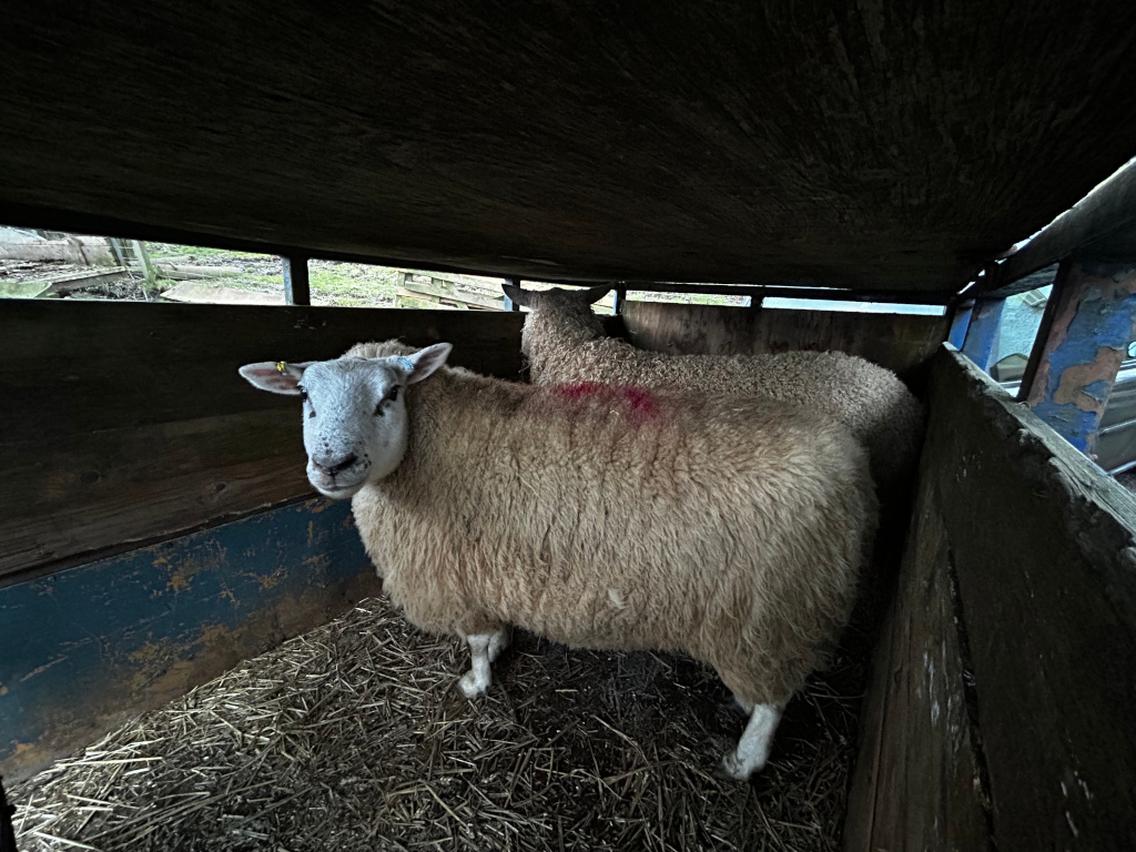 Shake and stirred Charlie out of bed to load up the 4x4 trailer with a tup and ewe, we are taking them to market today at Longtown, Cumbria. The tup jumped over a 4ft ring feeder filled with hay, then rolled over, landing on his side upon the polytunnel floor with a thud. Charlie had to re-enter the polytunnel and repeat the previous process of getting him out.