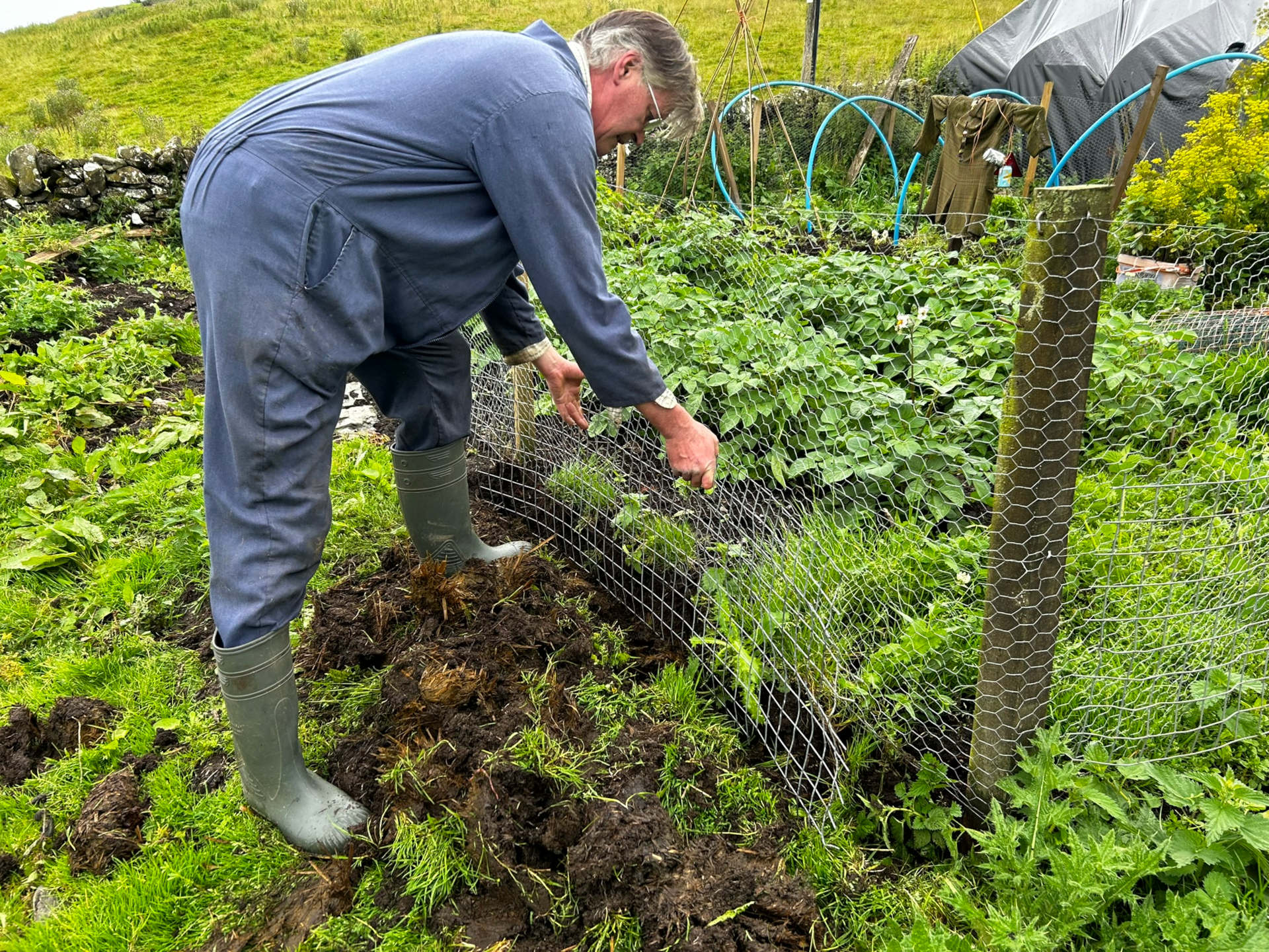 Sam, I want to return to the garden. Charlie helped finish inserting wire mesh.
