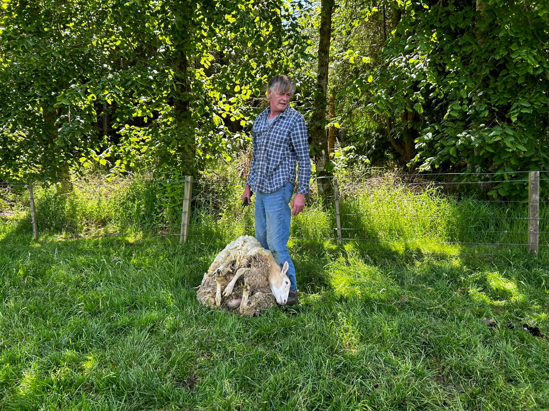 Sheared, I asked Charlie why he left the belly wool, he did not acknowledge the question. So of the lambs get weird about their mother ewes being sheared, sometimes they don't recognise them which can cause problems.