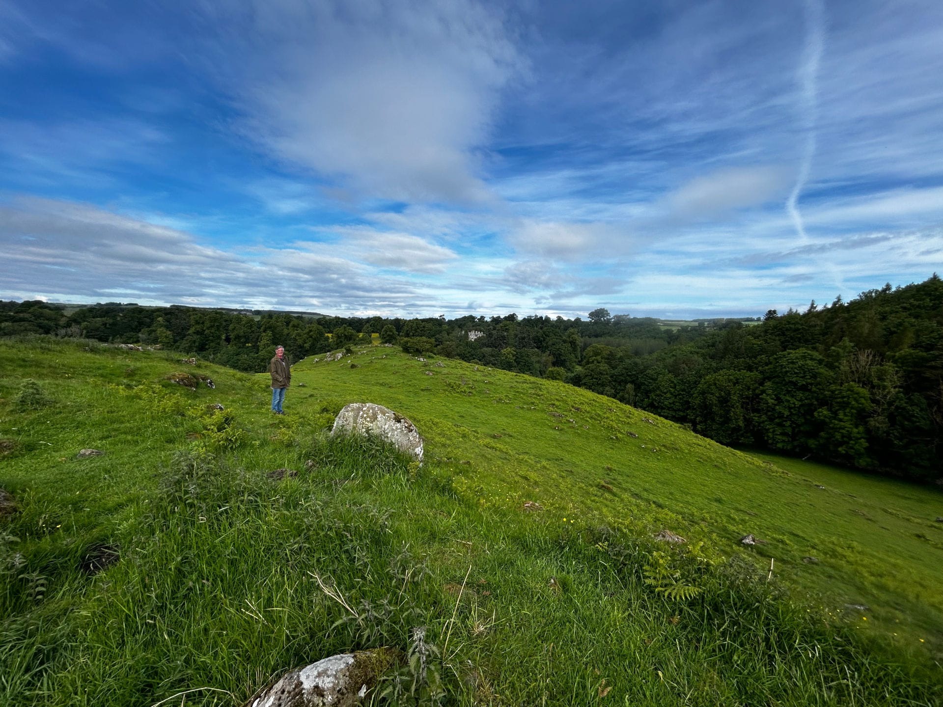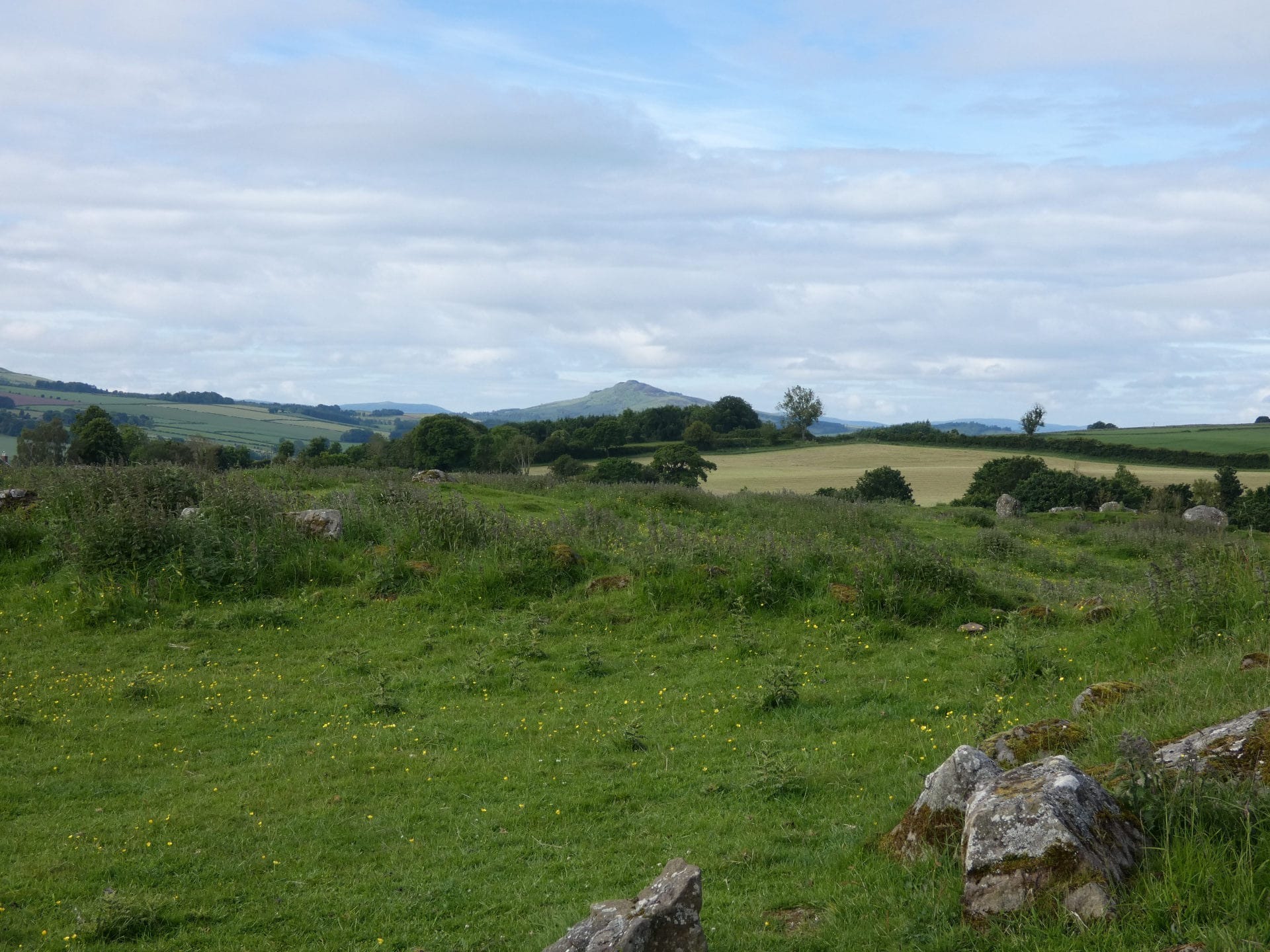Whilst waiting for Charlie I noticed the Common riding on the hillside, presumably the Denholm ride out, riding near Rubis Law, out hunting English people on horse back.