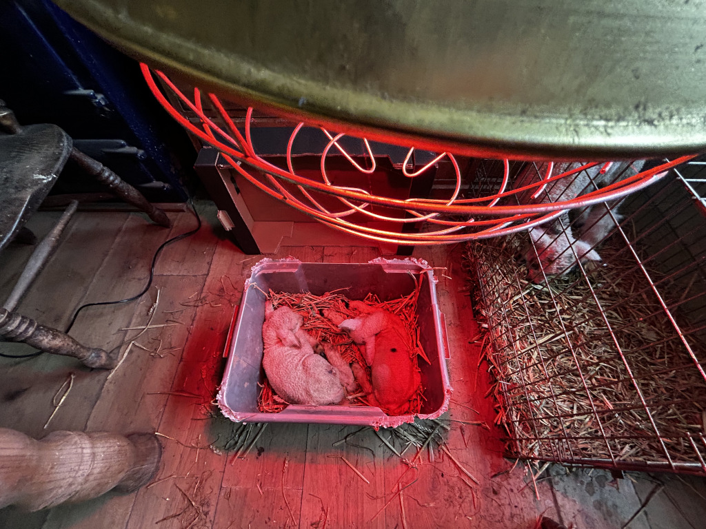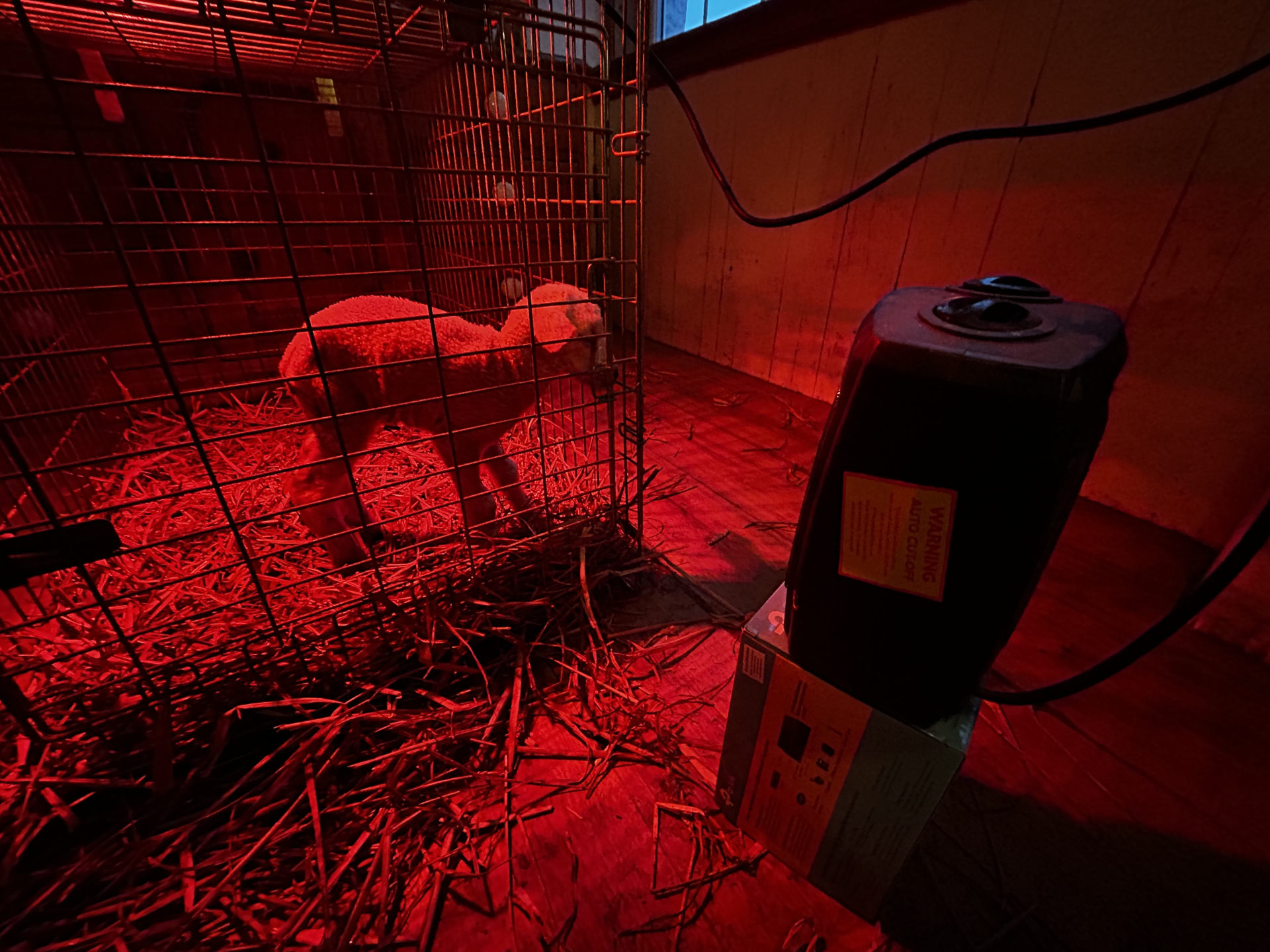 Charlie making sure the triplets get their colostrum, they can't walk yet, very small.