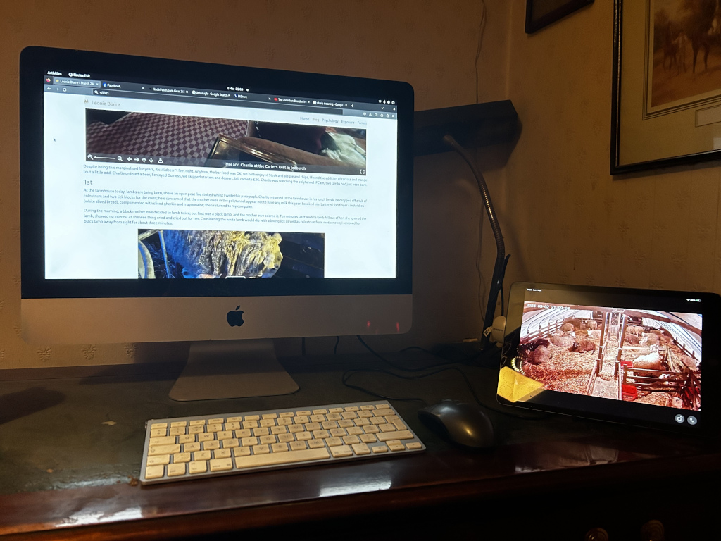 Despite being this marginalised for years, it still doesn't feel right. Anyhow, the bar food was OK, we both enjoyed Steak and ale pie and chips, found addition of carrots and mange tout a little odd. Charlie ordered a beer, I enjoyed Guinness, we skipped starters and dessert, bill came to £36. Charlie was watching the polytunnel IP Cam, two lambs had just been born.