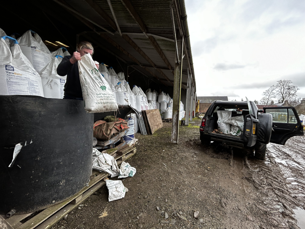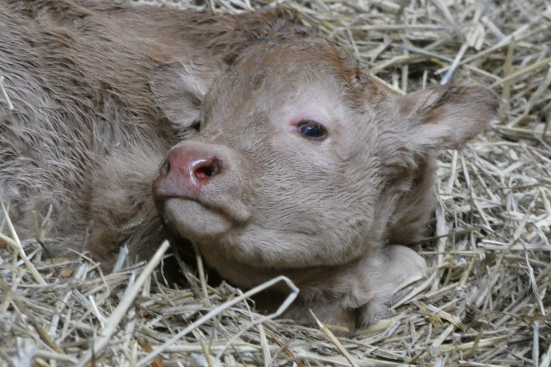 Returning to Hawick via Denholm we loaded the 4x4 with several bags of chaff; Charlie took me to a coo that had given birth to a "bulldog" calf. Whilst Charlie parked the 4x4 for loading, with my bridge camera I photographed a few calfs.