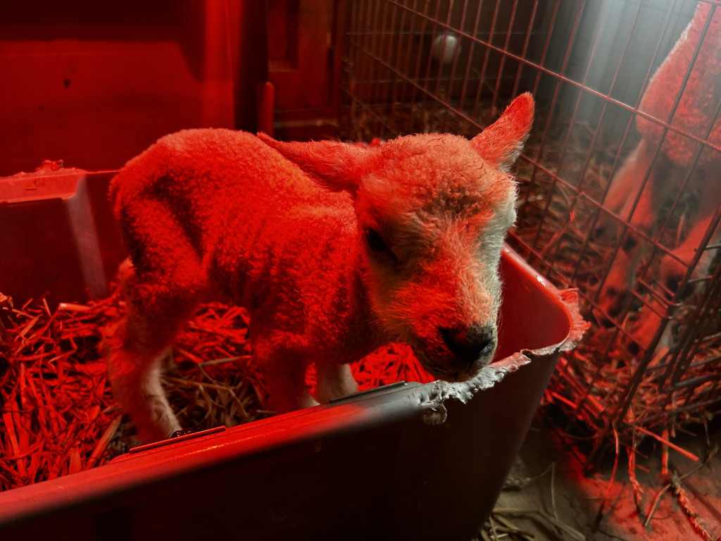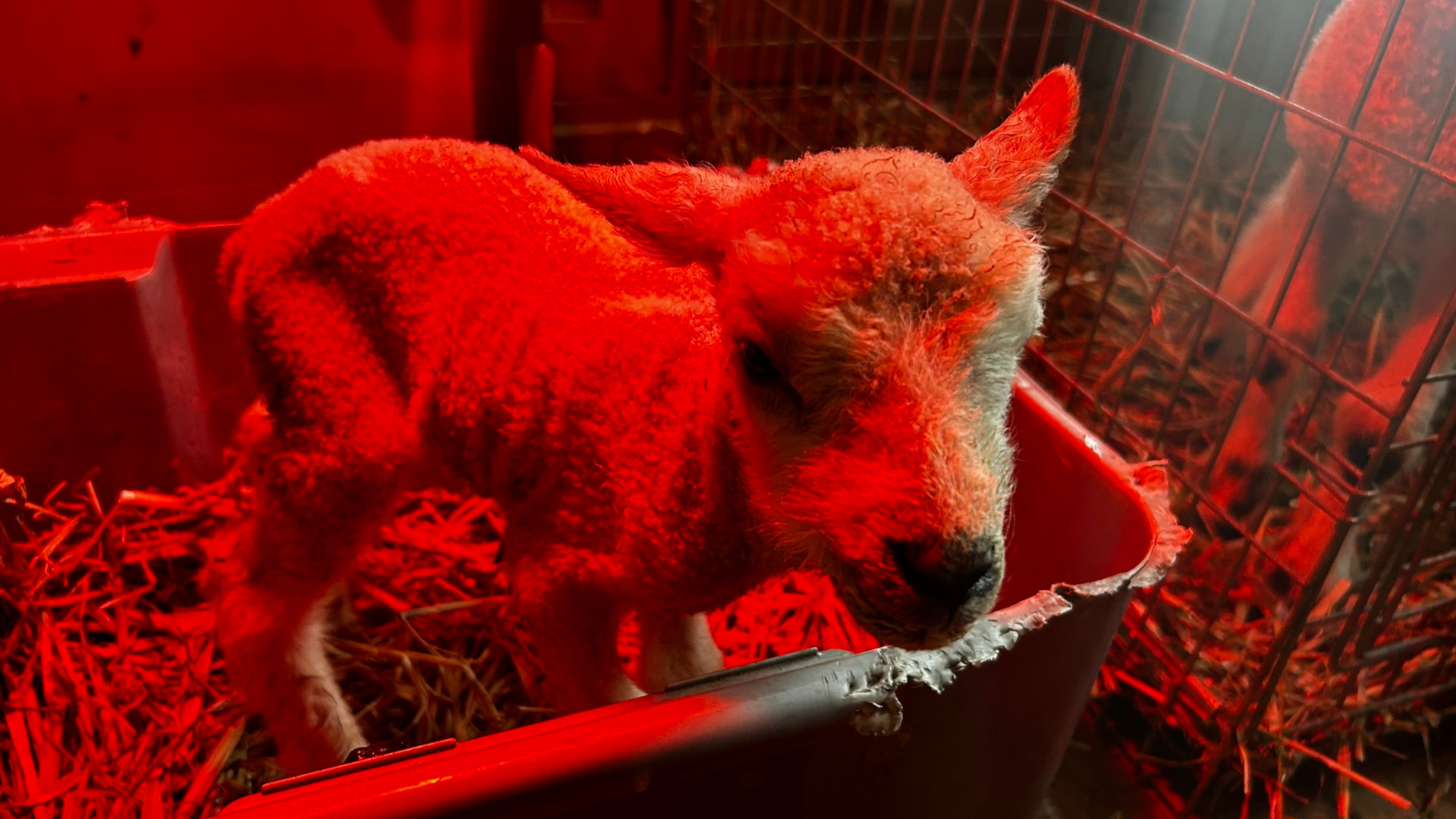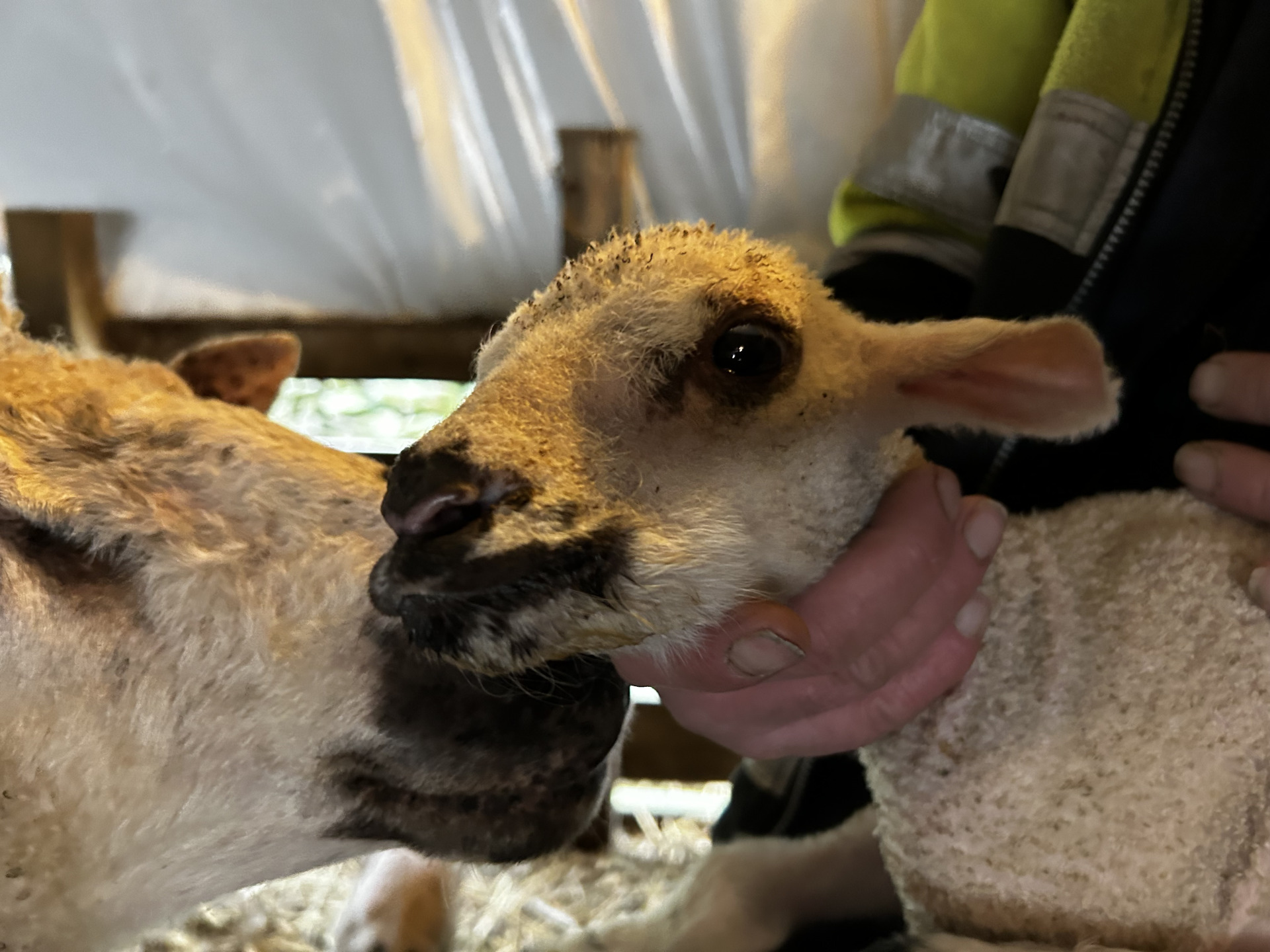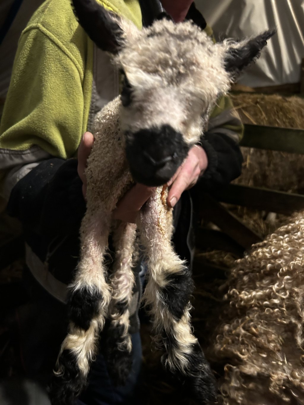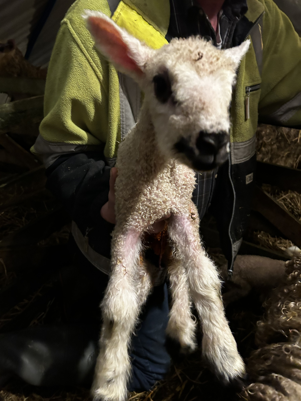 This lamb was birthed from a Charollais tup and a Herdwick ewe.