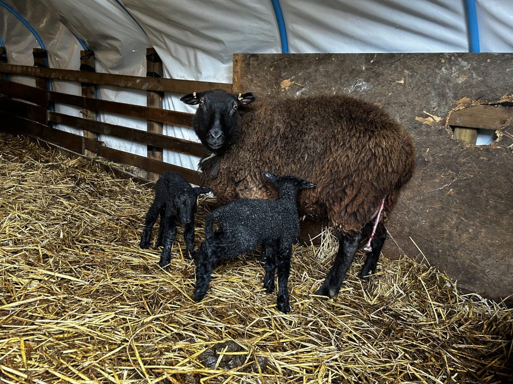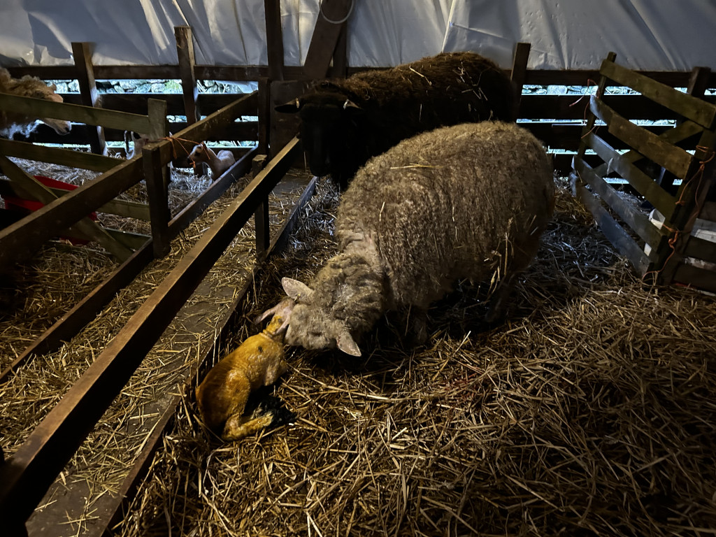 During the morning, a black mother ewe decided to lamb twice; out first was a black lamb, and the mother ewe adored it. Ten minutes later a white lamb fell out of her, she ignored the lamb, showed no interest as the wee thing cried and cried out for her. Considering the white lamb would die with a loving lick as well as colostrum from mother ewe; I removed her black lamb away from sight for about three minutes.