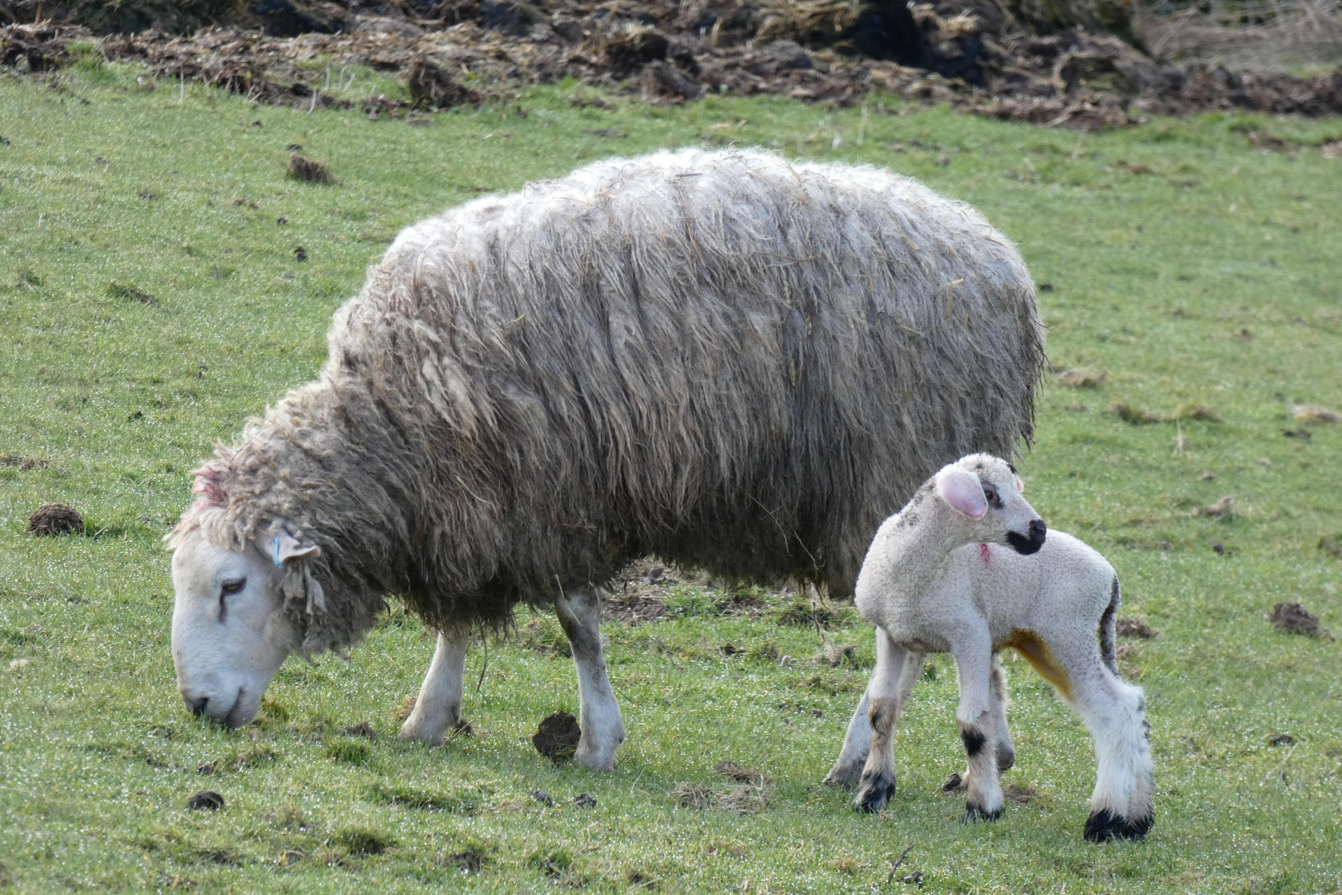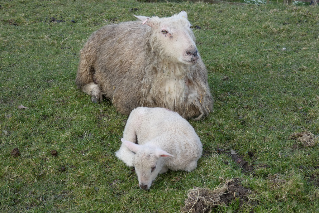 Mother ewe and her wee lamb, seem to be proud and glad to be outside.