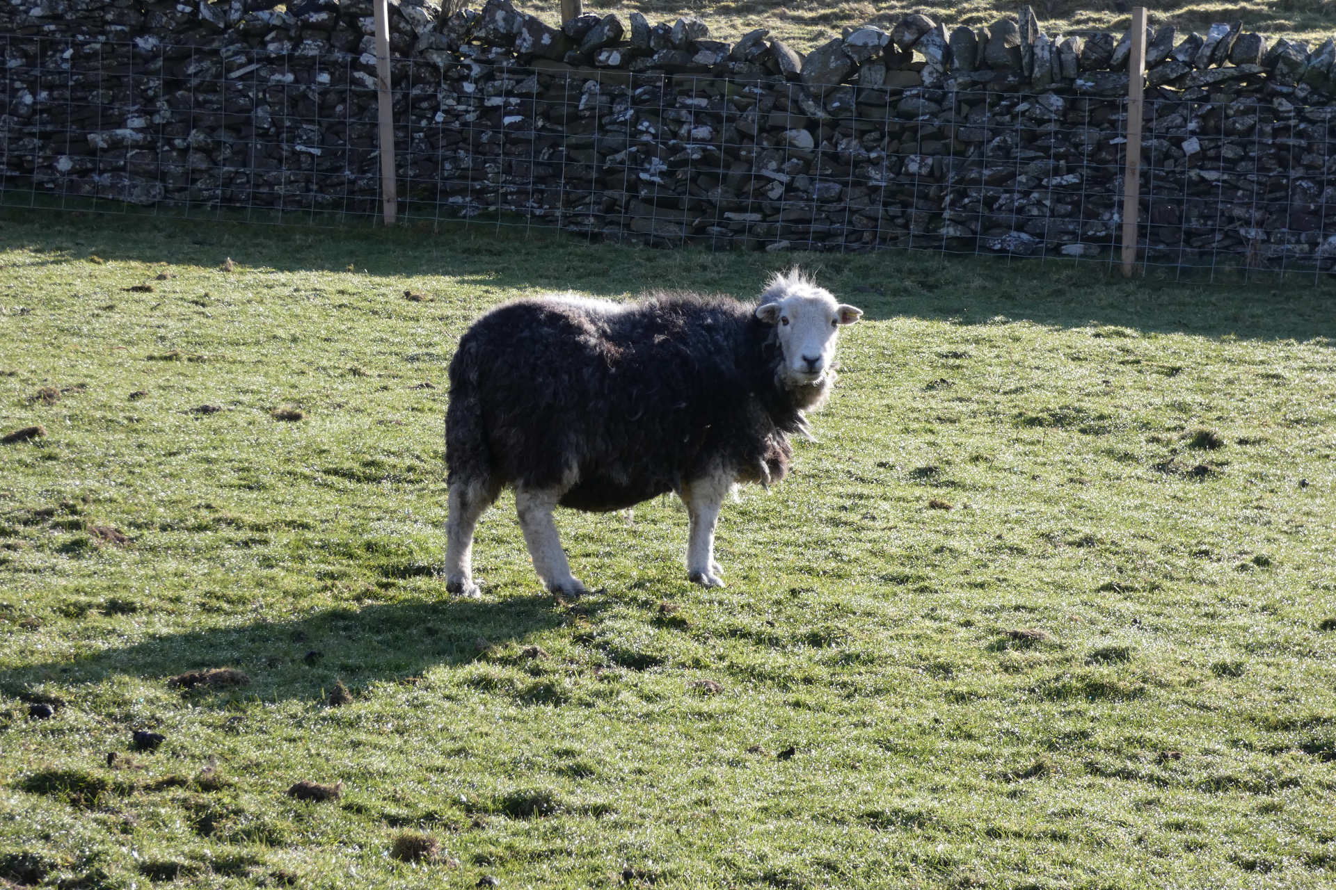 Herdwick ewe is in lamb, although she has no bag yet, her lamb/s will be half Herdwick, half Teeswater.