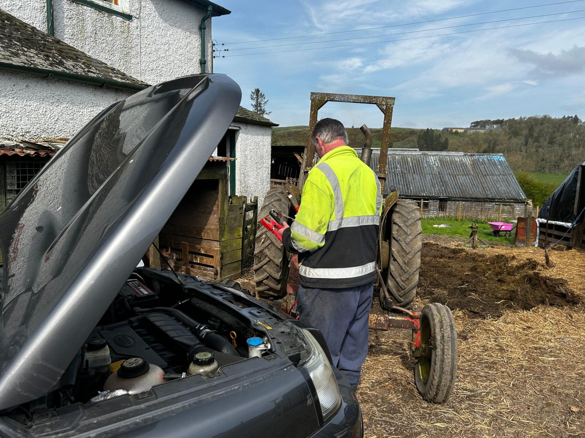 We had to jump start the tractor today, the battery is flat. Charlie found the ignition had been switched on; we believe a trespasser I witnessed run off attempted to steal it.