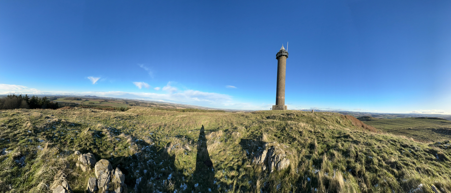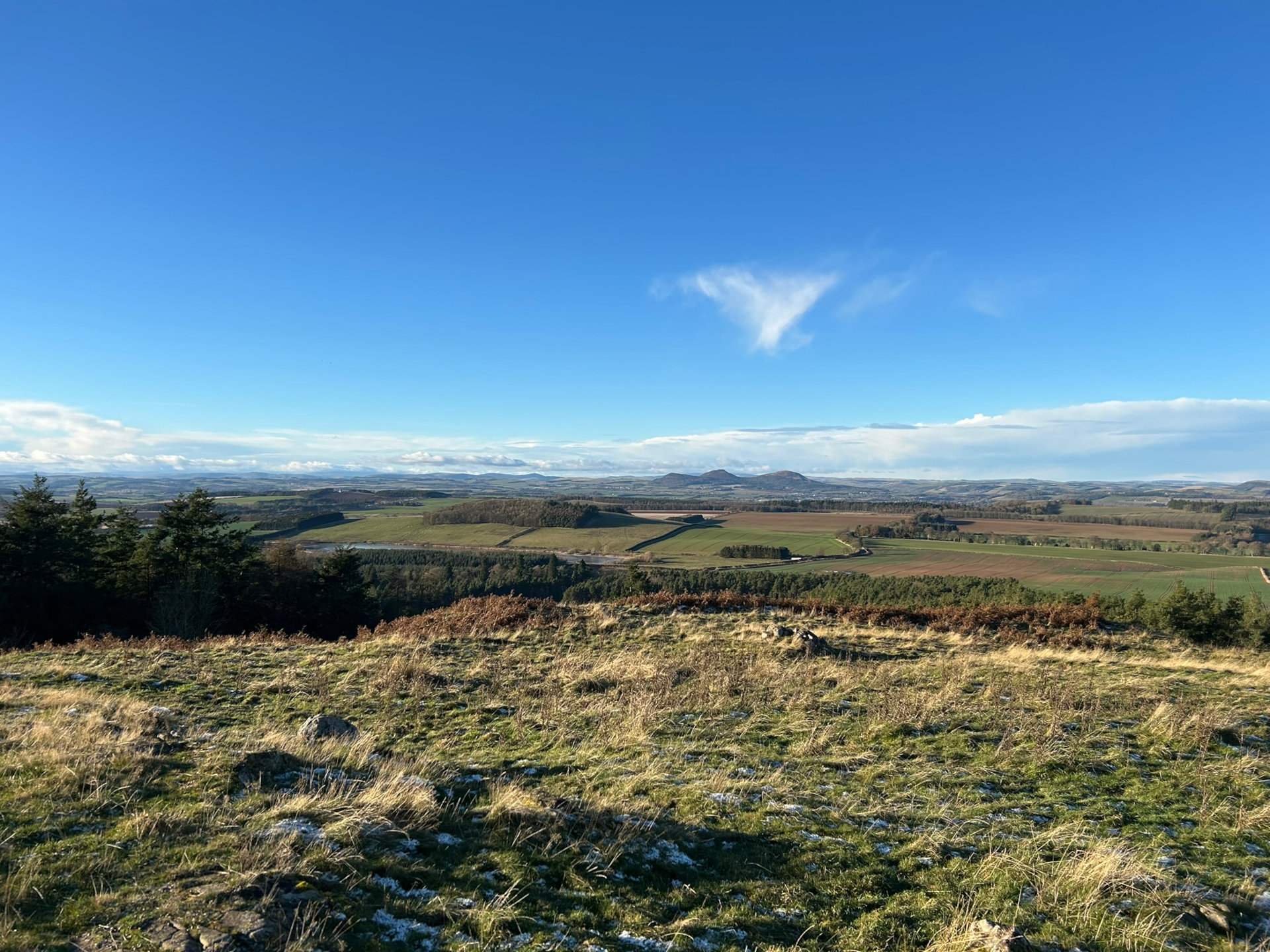 Viewable from the panoramic summit are the Cheviot Hills, Rubis Law hill, Elidon hills and Monteath Mausoleum. We didn't look for Minto and Smailholm towers but sure they are also visible. Landscape of the surrounding area had the appearance of a Hillfort.