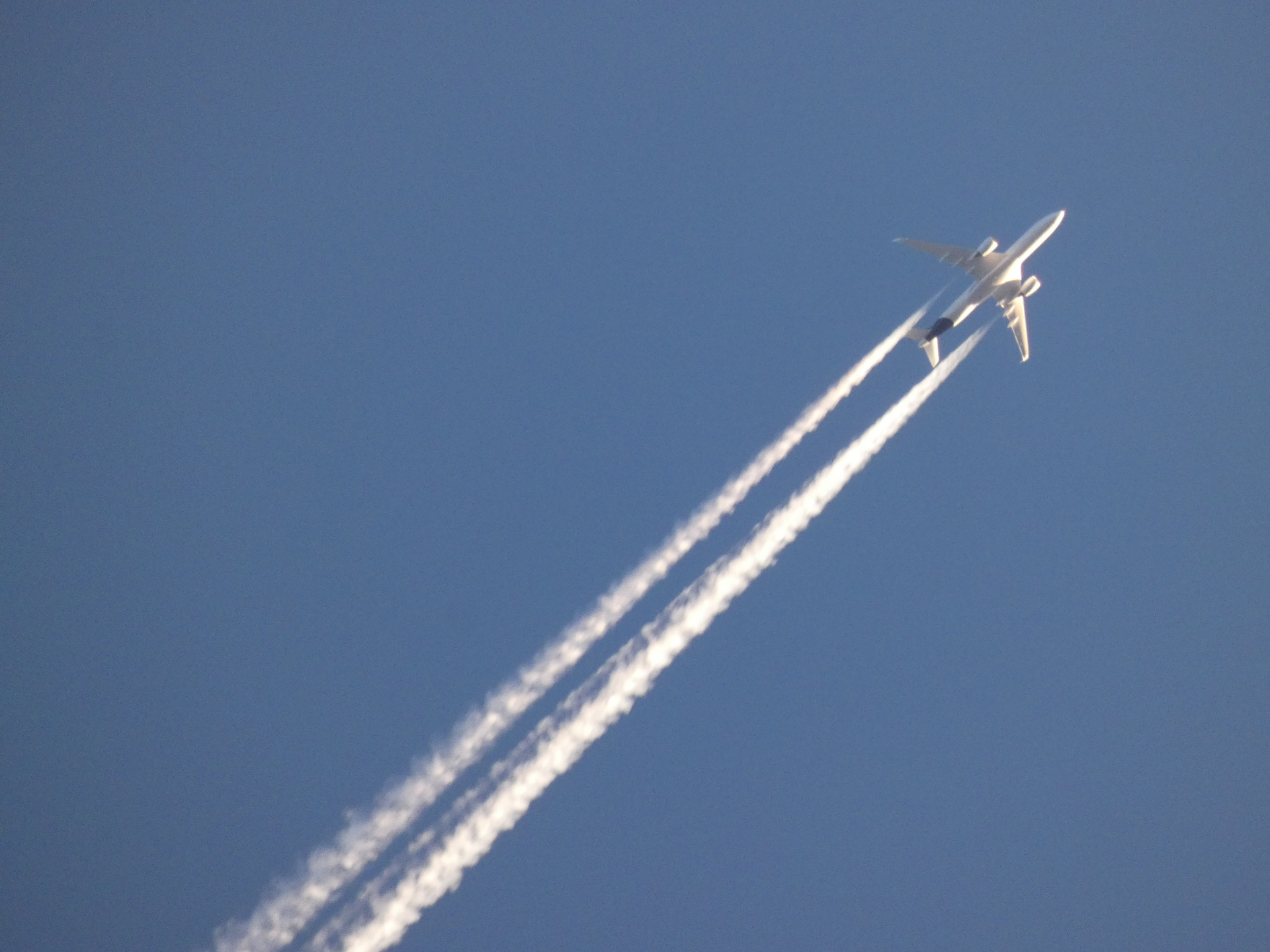 Planes fly high over Woodburn, heading towards Edinburgh airport.