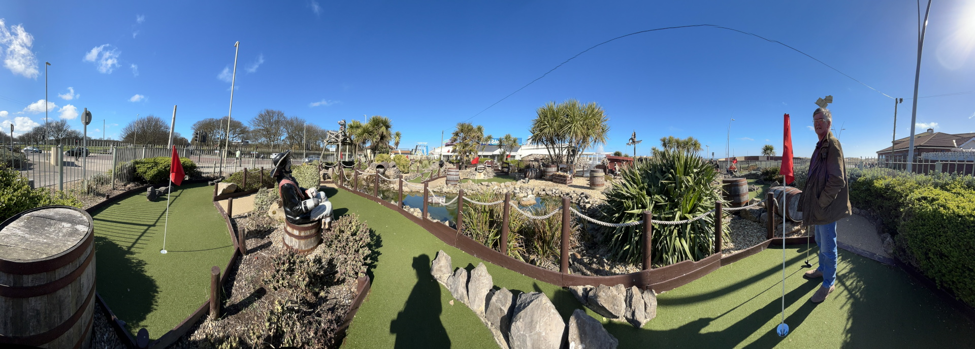 Charlie wanted to play crazy golf, we chose the pirate course, he did not get the win he thought he would though, at one point in the game he was two balls down.