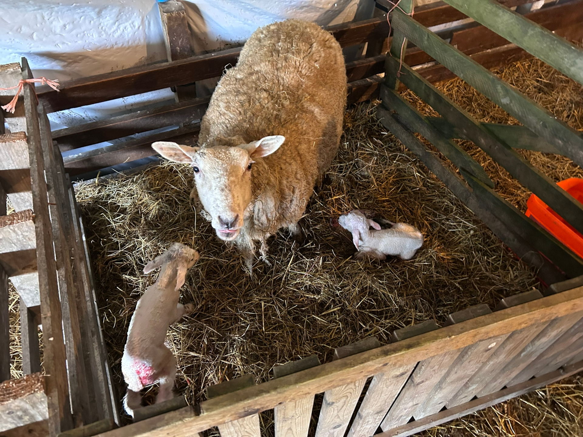 I've seen two mother ewes give birth to three lambs. A Blackface cross had one lamb and a Zwartble cross had two. Both lambs were born on their own.