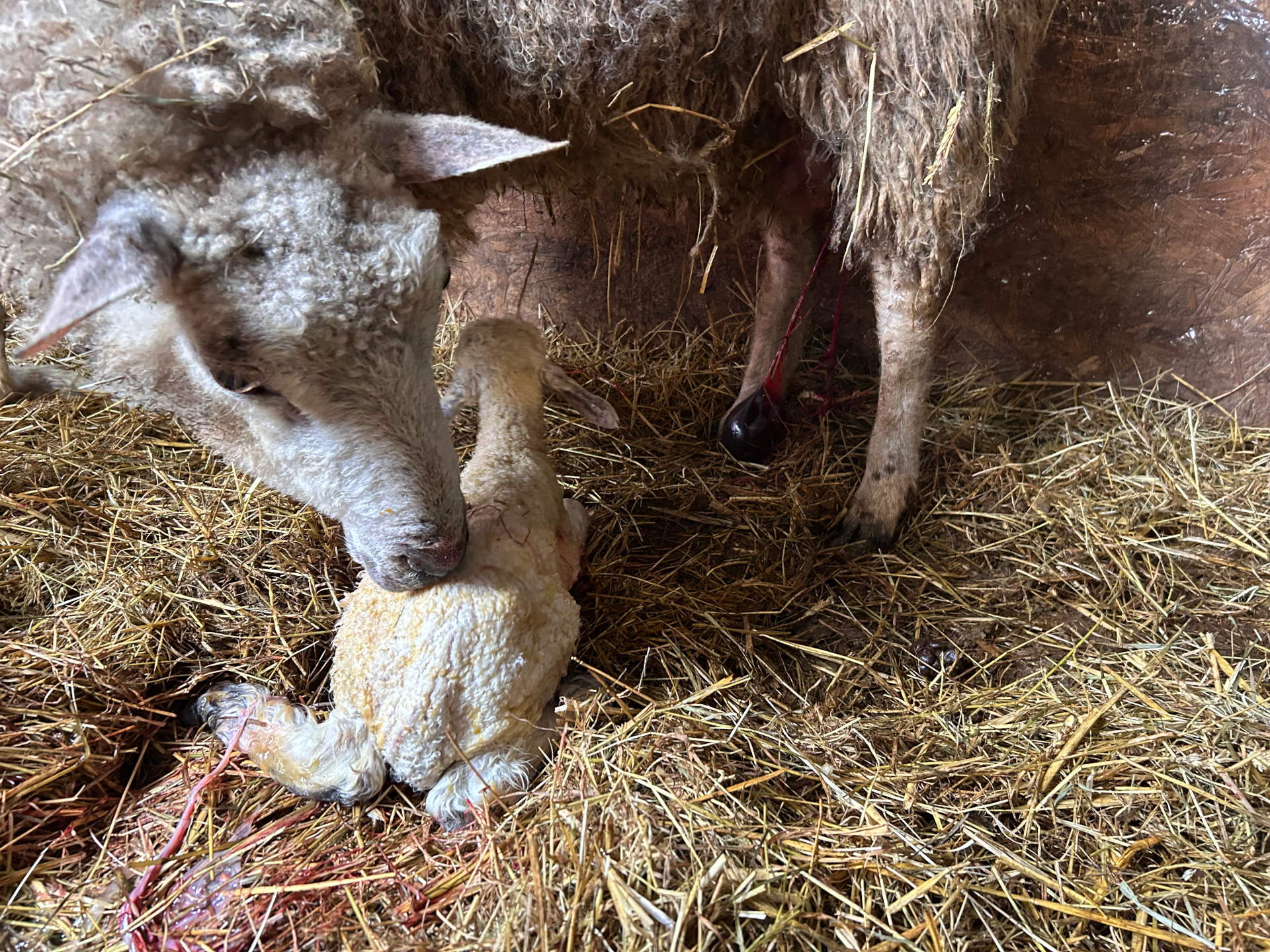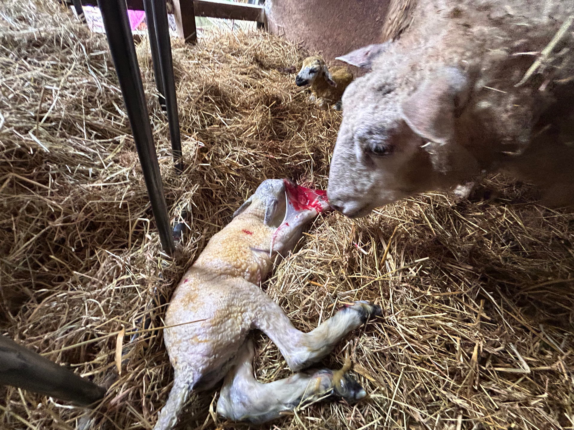 I came back to Woodburn after my walk to discover that a mother ewe had given birth to twins.