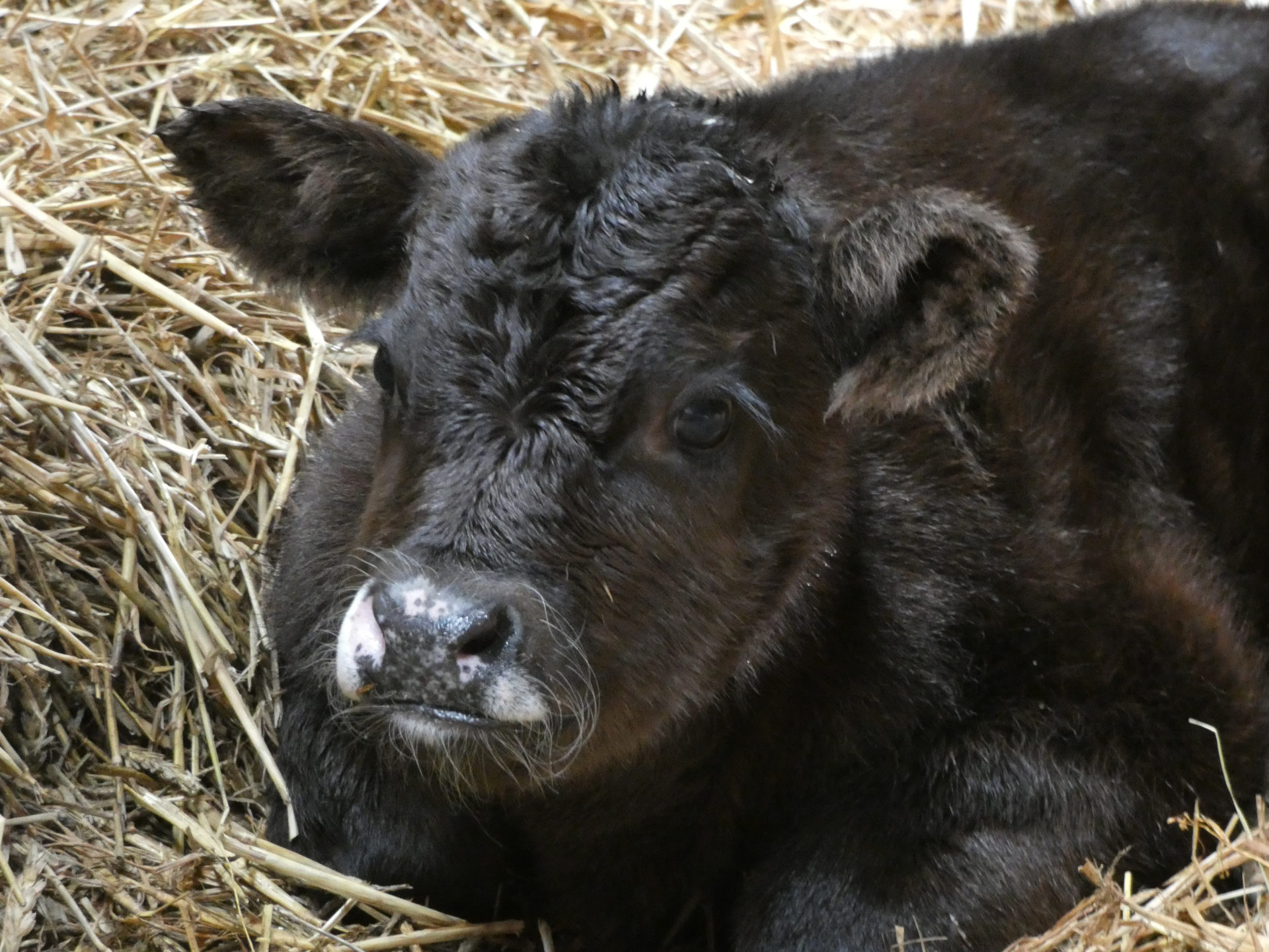 I took a few pictures of two-day-old calves while he loaded hay bales.