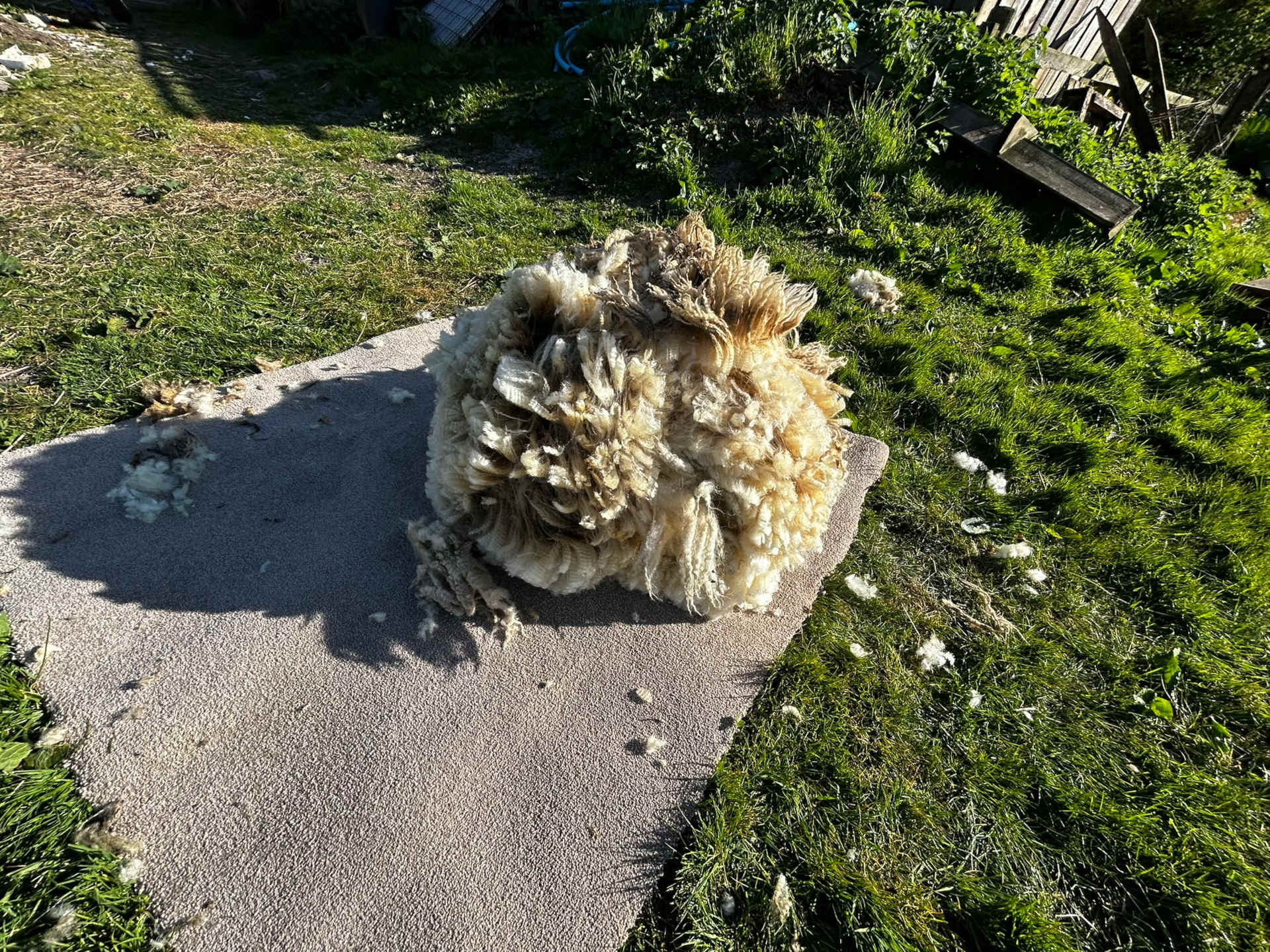 Charlie started the task of sheering five sheep in the afternoon. First was our tup; earlier, when he was in our paddock, the heat seemed to be negatively affecting his mental state.