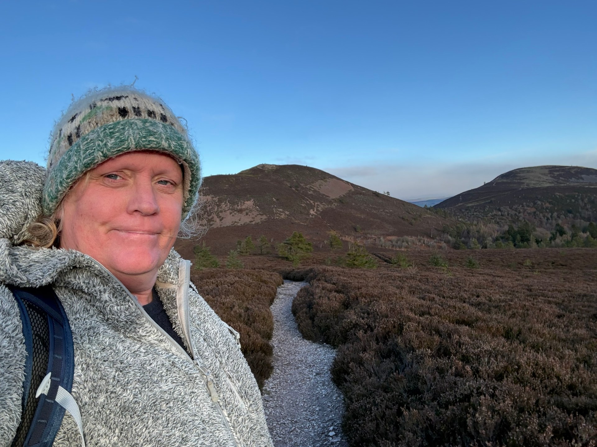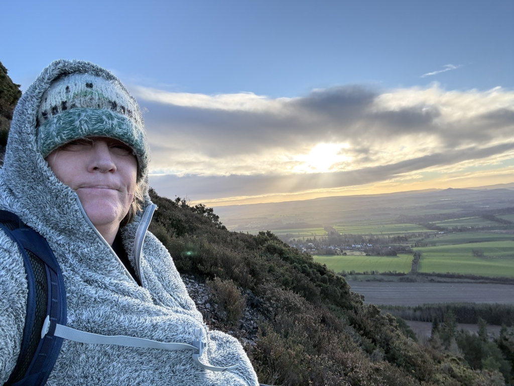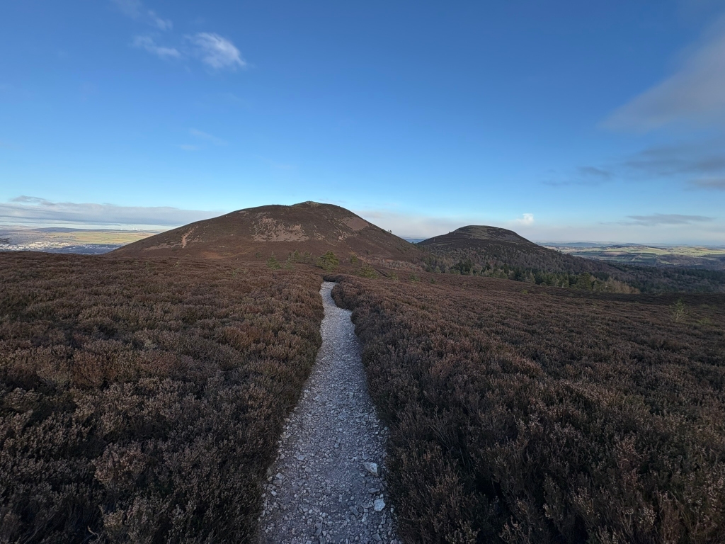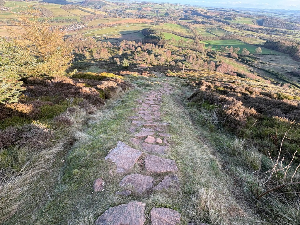 The video, which I shot along the Eildon Hills, will be posted to my YouTube channel later tonight. The trip started at Bowden Kirk and ended at the Ryhmer stone. Bowden was friendly, and the Kirk was warm. Climbed the first hill via a steep shale path that passed heather and gorse. I walked the third hill, purposely avoiding the second. My feet were strained during the descent. Charlie arrived and took me to Ancrum after the Rhymer stone.