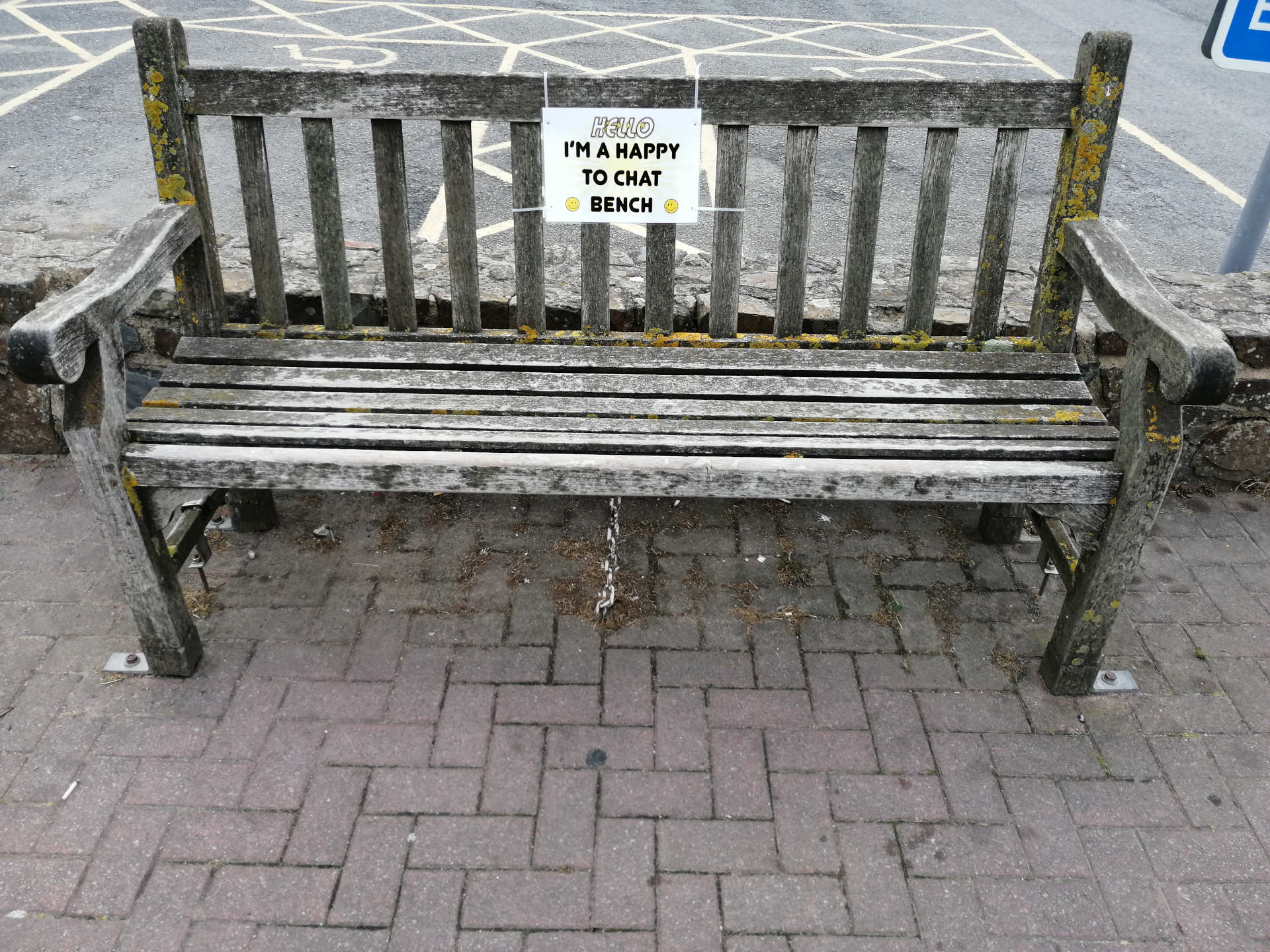 Metal plate embedded in the ground. The plate is shaped like a footprint and has the words Bideford Kingsley's Little White Town embossed on it. A small symbol, possibly a building or hat, is also visible at the bottom.